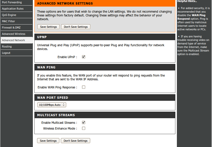 В разделе Advanced Network в поле Multicast Streams отмечаем галочкой опциюEnable Multicast Streams, тем самым включая ретрансляцию «мультикаст» трафика в Вашу домашнюю сеть.