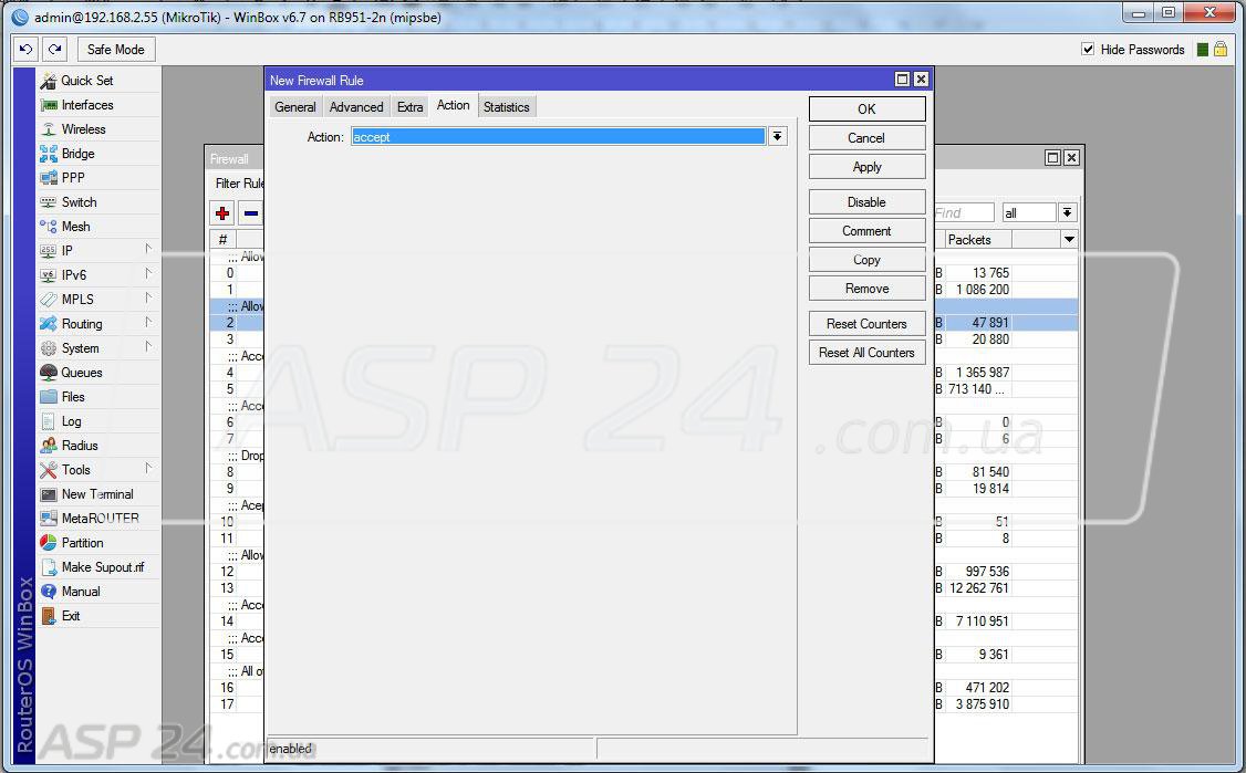 Рис. 10. На вкладке Filter Rules, добавляем запись: Action – accept