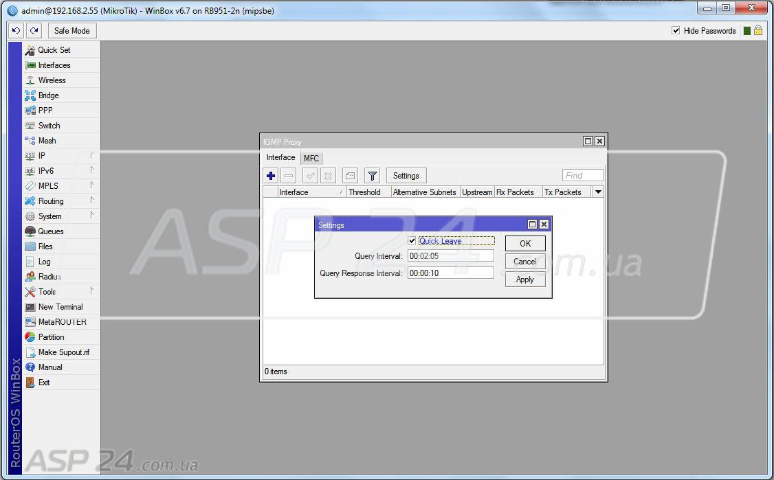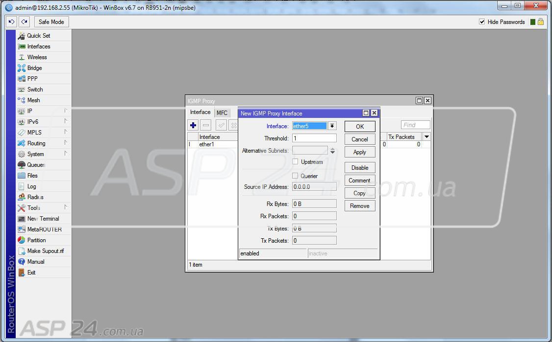 Interface – здесь нужно только указать интерфейс, к которому подключена IPTV приставка. Например – ether5, или же, если приставок несколько или они подключены по Wi-Fi, то можно выбрать мост (brige).